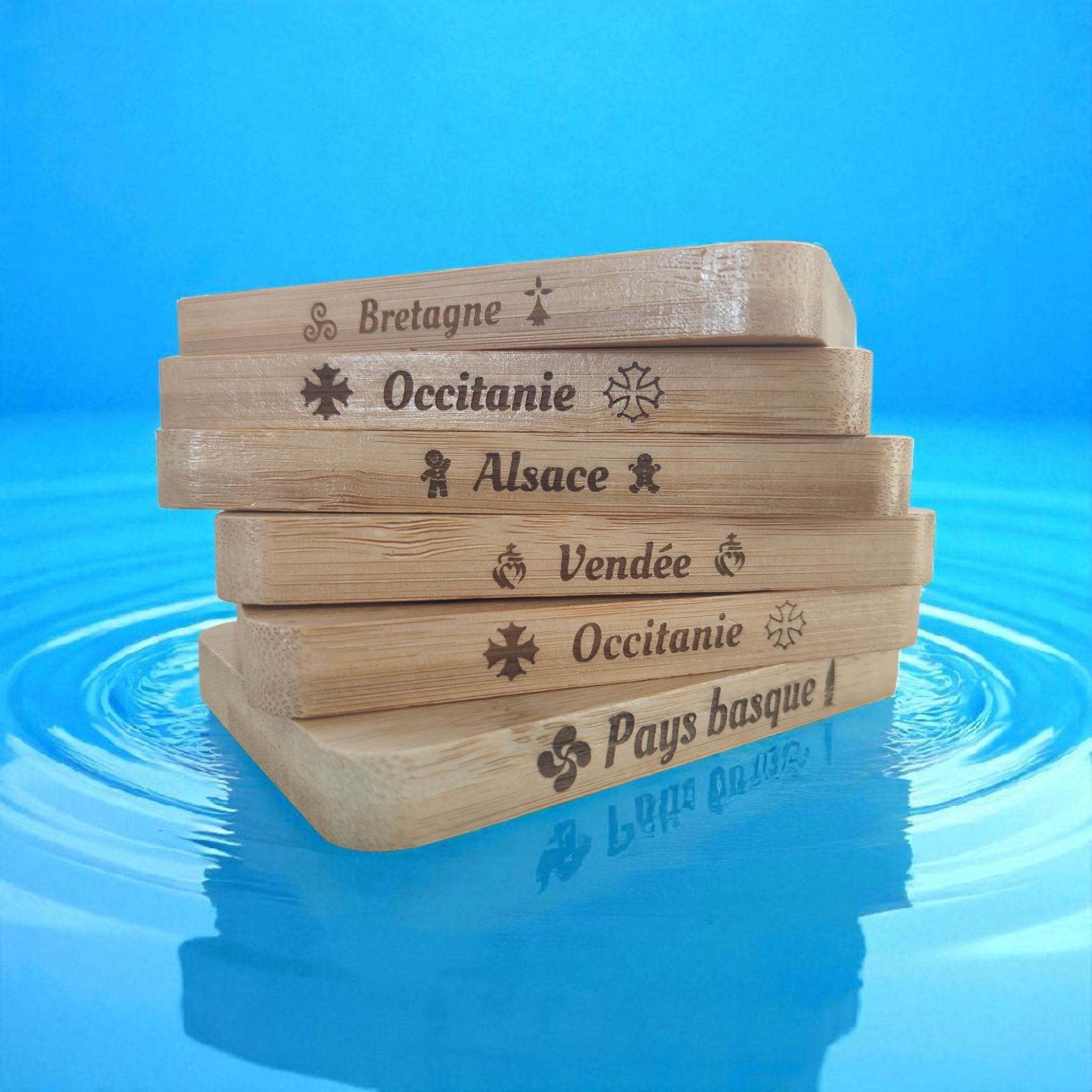 Elles sont Fabriquées à la main, dans notre atelier situé à Vestric et Candiac, avec du savon et divers végétaux (bambou, loofah, etc.)