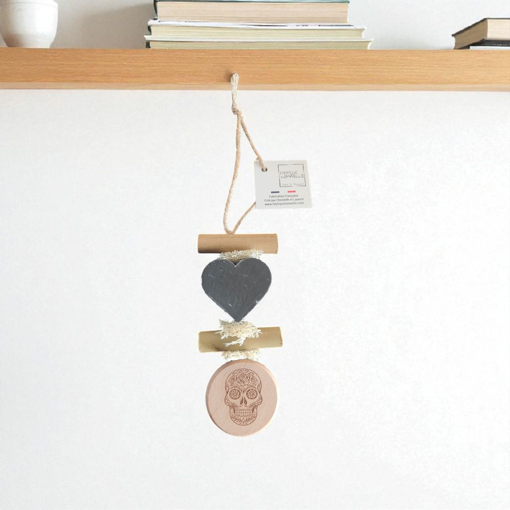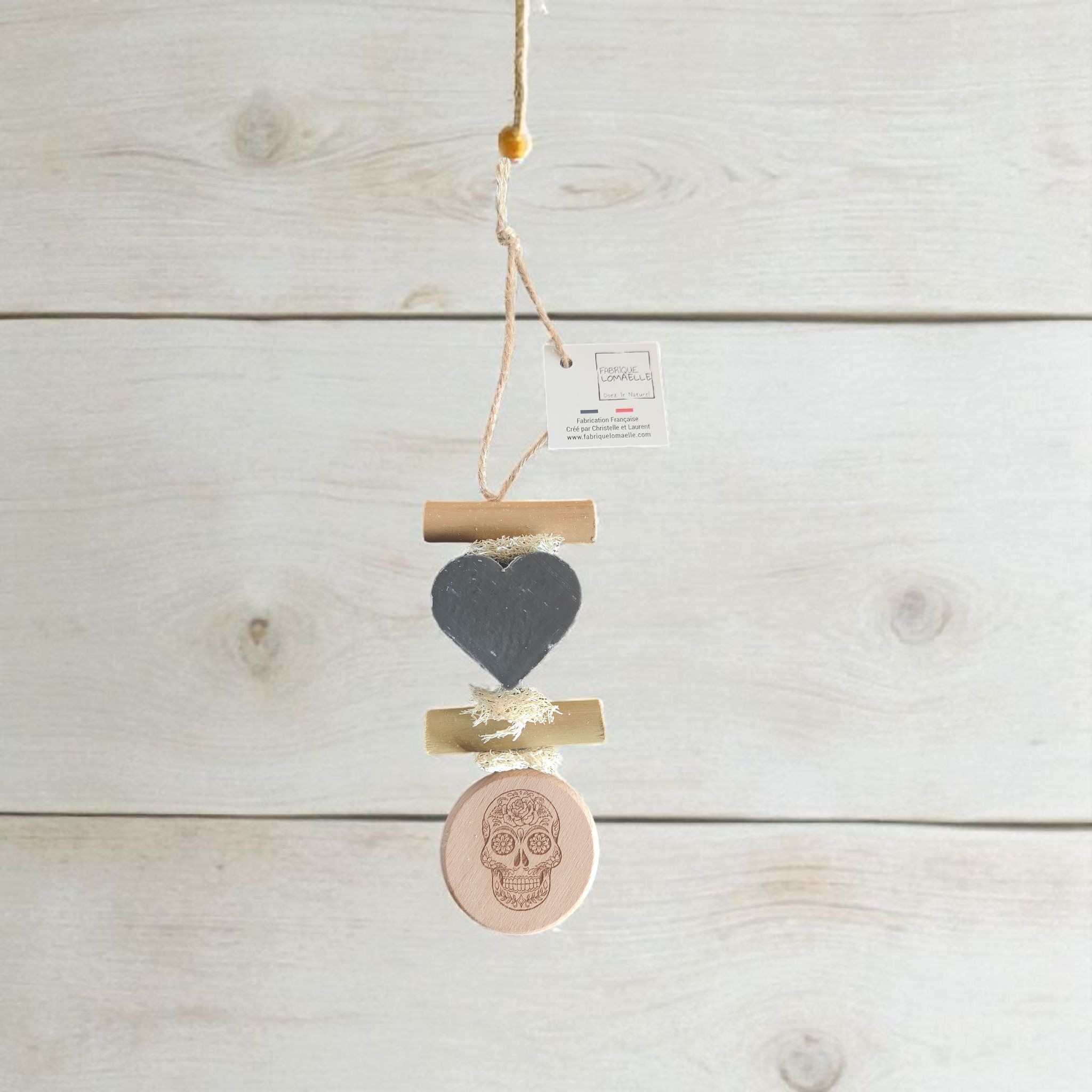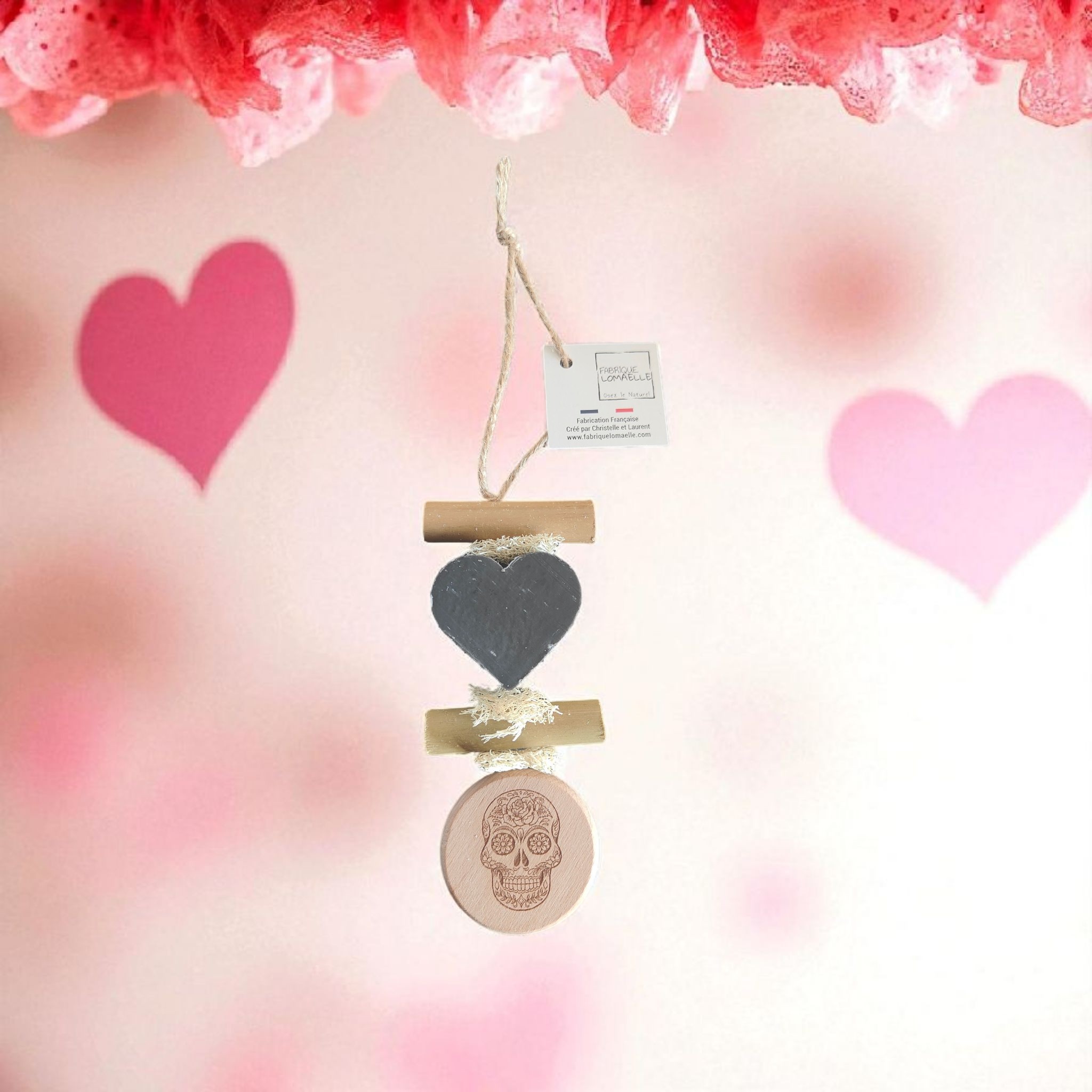 Tresse 1 Savon Cœur Fleur de Gingembre avec Rond bois Gravé “Tête de Mort Mexicaine”