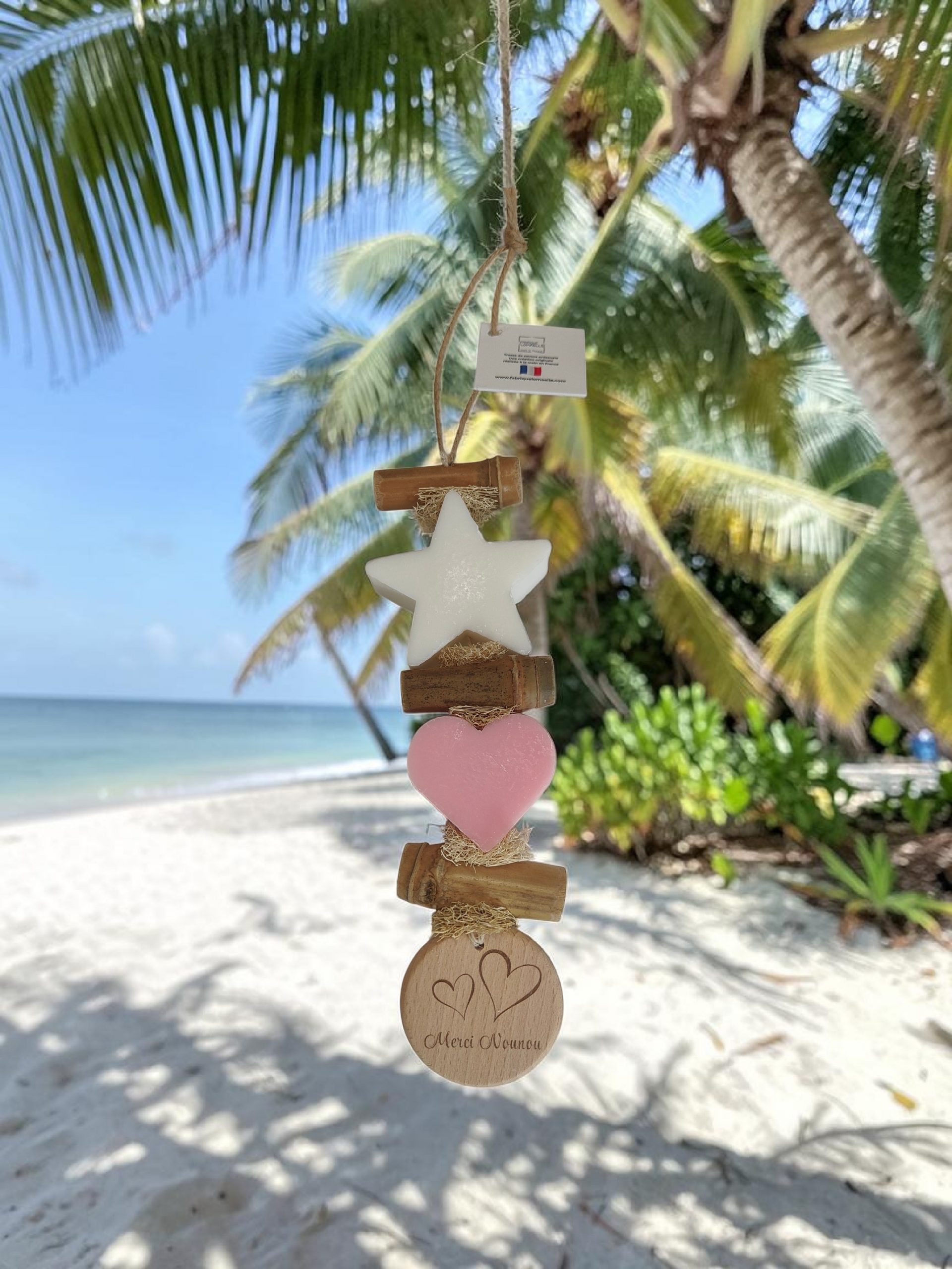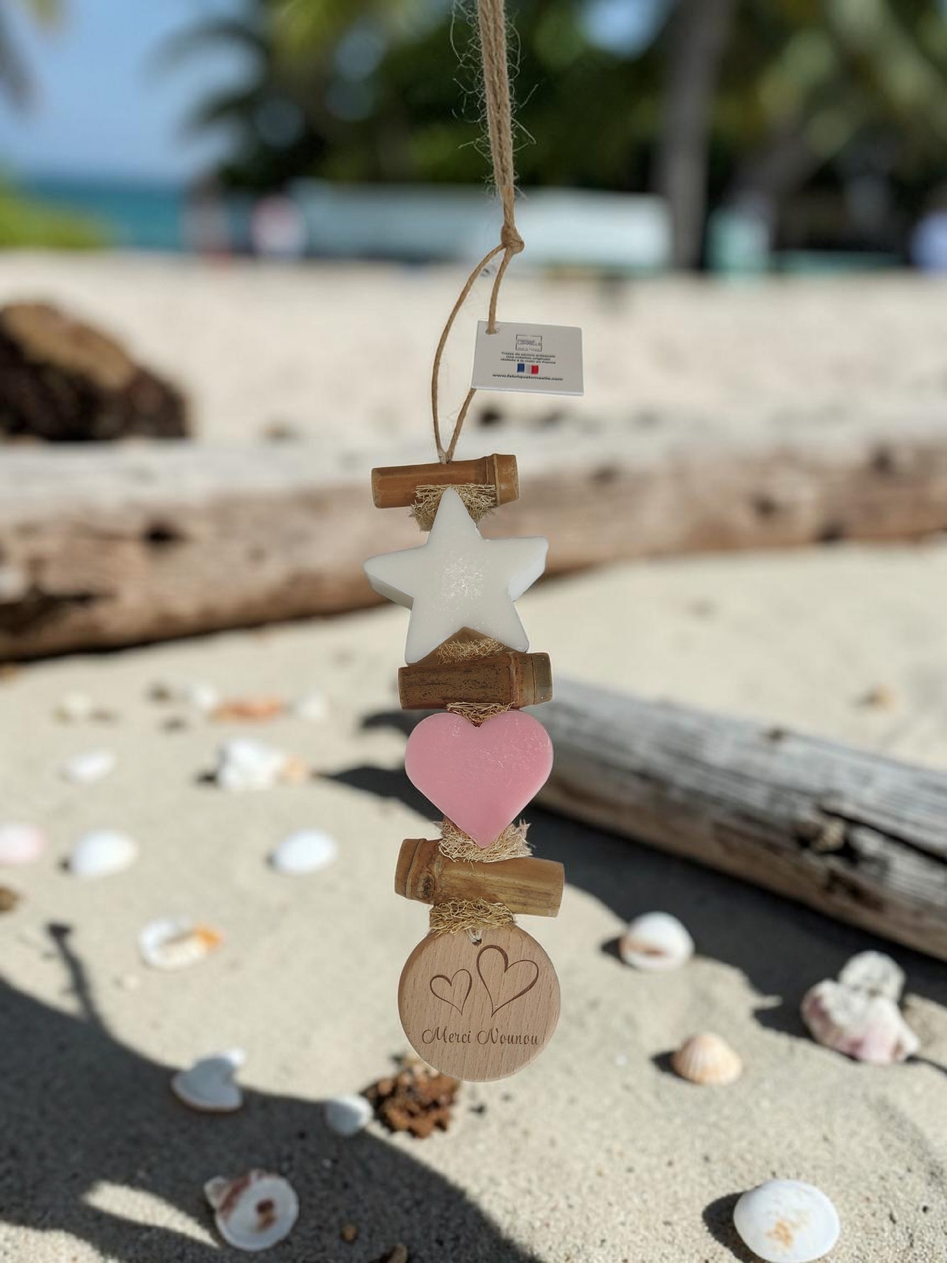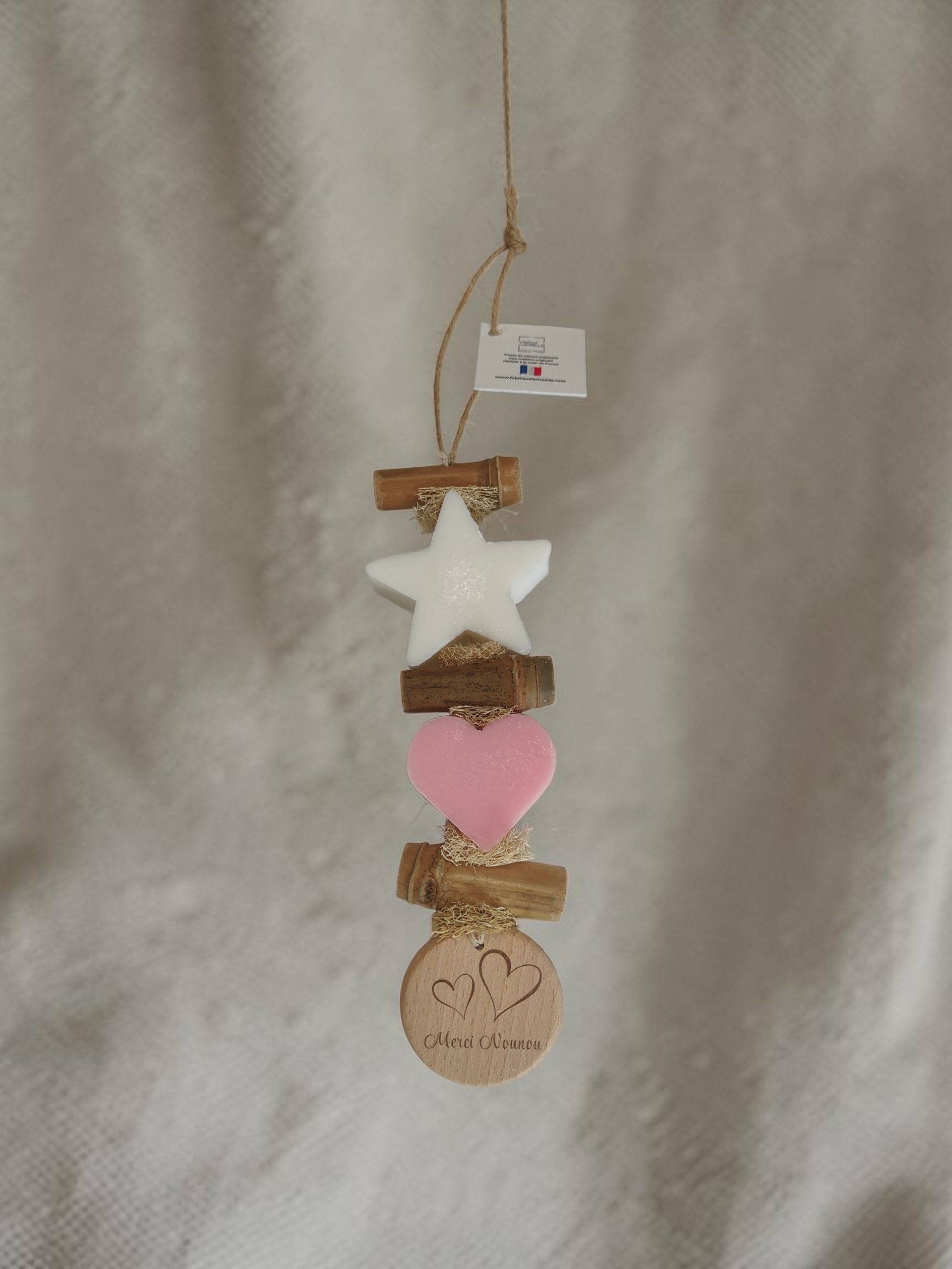 Guirlande de deux savons en forme d’étoile et d’un cœur parfumés bergamote et rose